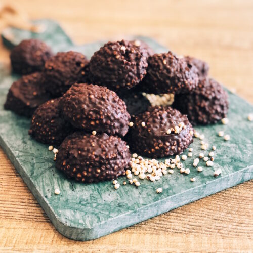 Ik heb dus chocoladecrispies gemaakt met amandelboter en gepofte quinoa. Super lekker en echt heel makkelijk en snel om te maken. Ben je niet zo’n keukenprins(es) dan kan je alsnog dit op tafel toveren.