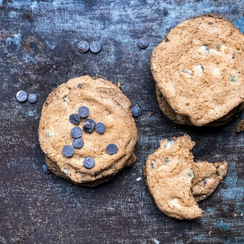 - 250 g chocolate chips (heb je geen chocolate chips? Sla dan je favo chocoladereep in kleine stukjes)